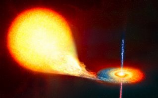 This highly-energetic burst is thought to have been produced by the accretion of an active sun-like star being gradually ripped apart by its black hole companion. The star’s cannibalized gas surrounds the black hole in what is known as an accretion disk. But periodically, instabilities in this surrounding accretion disk will cause the star’s gas to be gobbled up by the black hole, releasing a burst of gamma rays that can last for days or weeks. Integral will devote a few more weeks to looking for more of the same.